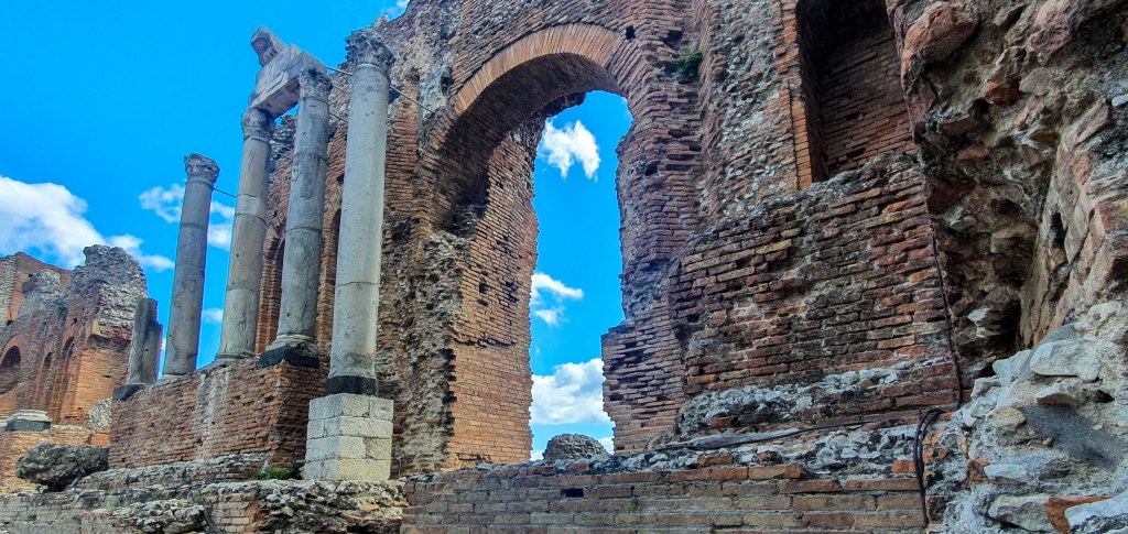 On reprend la route pour notre derniere visite au programme: Taormina. Cette petite ville qui surplombe la mer était très prisée, entre la fin du XIX ème siècle et les années 60, d’abord par l’aristocratie européenne, et après par de nombreux artistes, écrivains, etc..