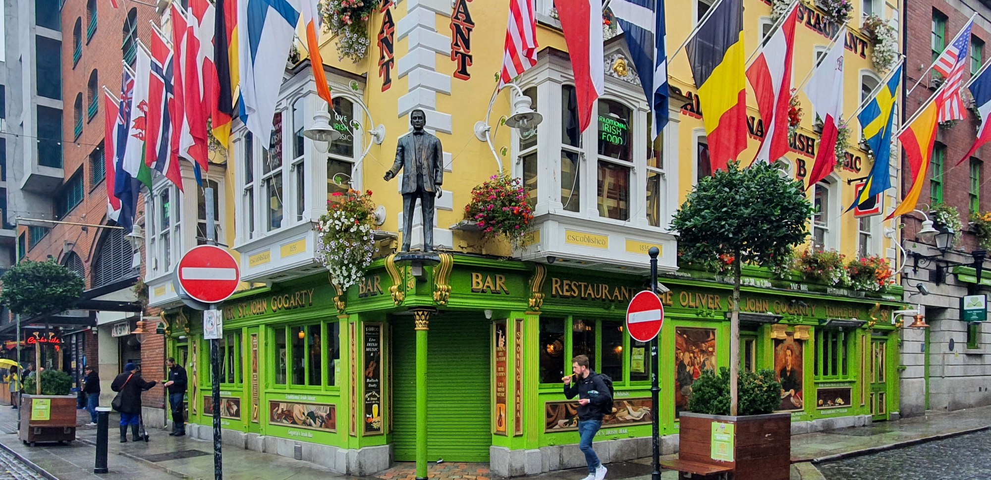 Notre journée a été consacrée principalement à notre transfert entre Reims et Dublin où nous sommes arrivés en début d’après midi. La faim nous tenaillait et nous nous avons décidé de déjeuner dans un pub du quartier « Temple Bar » avant de flâner sous une douce pluie.