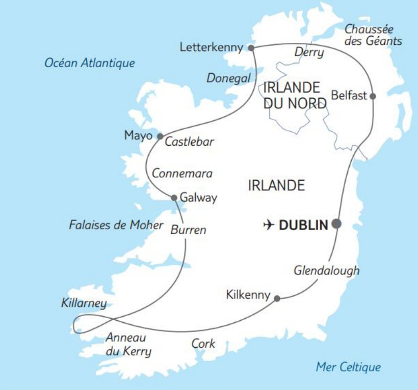 Voilà donc un mauvais prétexte (mais en avions nous vraiment besoin) pour découvrir la Verte Irlande en 12 jours dans le cadre d’un circuit organisé qui nous permettra d’en faire le tour complet.