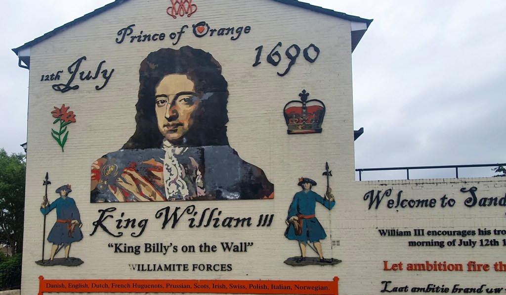Du côté loyaliste (anglican), on aime aussi afficher ses convictions comme cette fresque du prince d’orange vue sur une maison. Le prince d’orange est celui qui a permis de rattacher l’Irlande à l’Angleterre après avoir battu les catholiques locaux au 17 ème siècle.