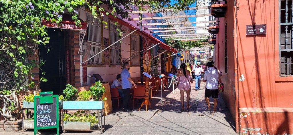 La vieille ville est divisée en 2 parties. Les quartiers populaires, avec leurs maisons de couleurs, comme nous en avons tant vu depuis quelques jours dans les caraïbes, leurs petites rues étroites pour mieux se protéger du soleil.