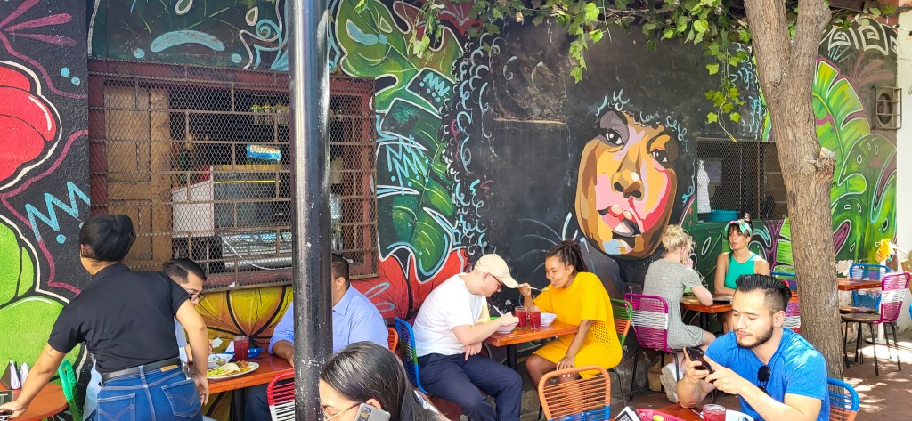 Nous faisons une halte pour le déjeuner sur l’indication de notre guide, dans un petit restaurant de quartier où nous dégustons une cuisine typiquement colombienne. Un régal.
