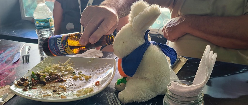 Espérons que Lapinou n’a pas volé le masque de chaman…sinon il risquerait lui aussi de se retrouver avec une jambe de bois 🤪. Continue de nous faire rêver avec ces images et récits pleins de soleil et de couleurs ! On voyage avec vous 😘