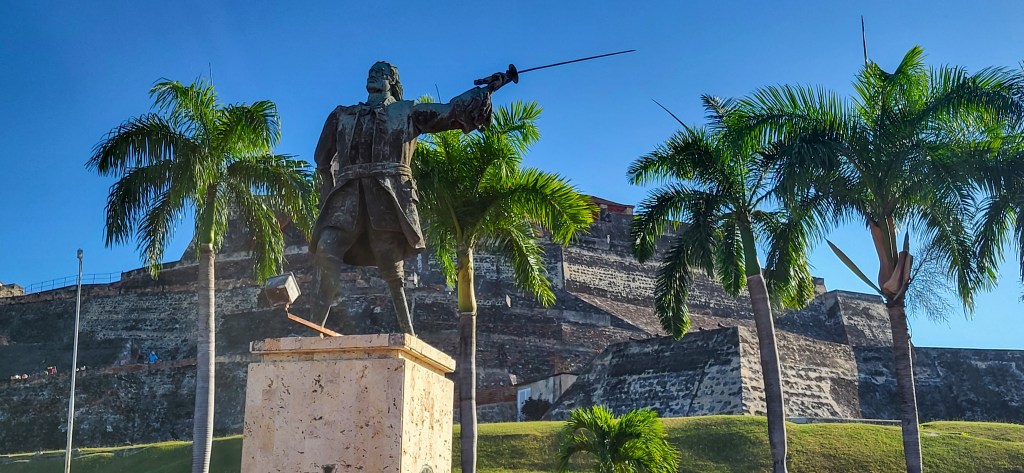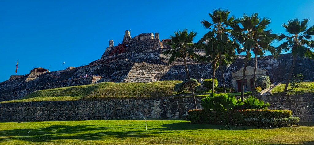 Après être sorti du port et de la ville contemporaine, nous arrivons au château de San Felipe de Barajas, une fortification presque construite à la Vauban qui défendait la ville de toute attaque par la mer.