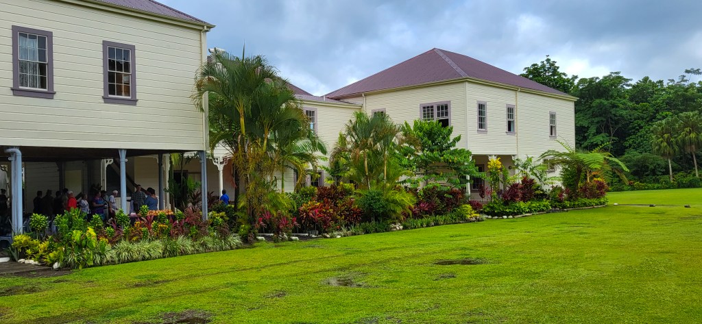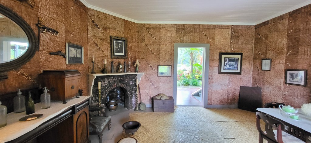 Nous traversons l’île pour aller vers la côte Est. En chemin nous nous arrêtons au musée consacré à Robert Louis Stevenson (l’île au trésor) qui a vécu et est inhumé aux Samoa. Ce musée est installé dans la belle maison coloniale où a vécu l’auteur écossais.