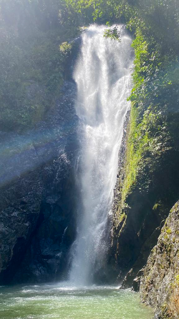 Sur la chemin du retour une cascade spectaculaire au milieu de la jungle.