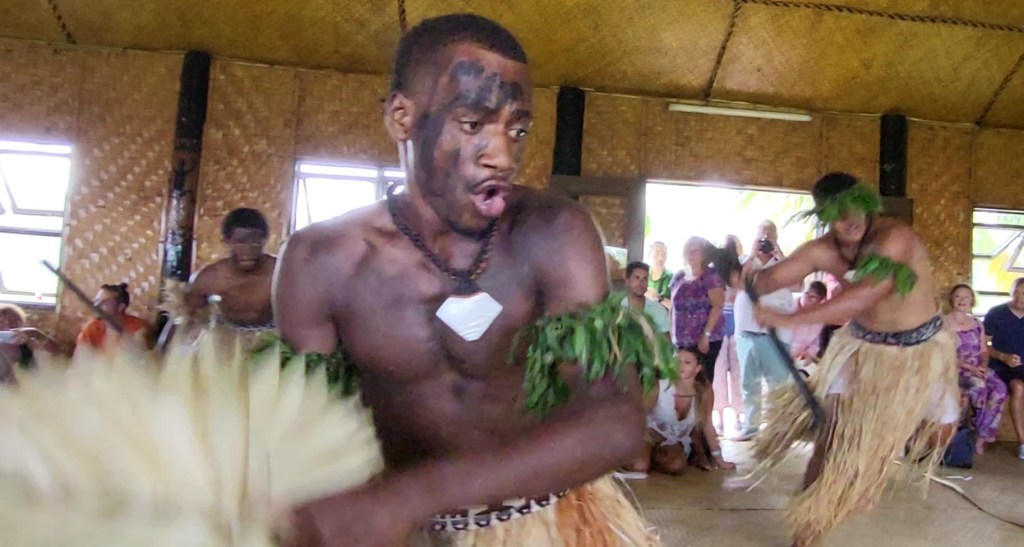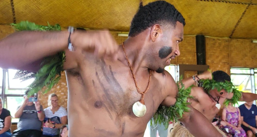 De retour au village de départ, nous dégustons un excellent curry de poulet avant de profiter du folklore local, avec pour point d’orgue, une belle démonstration de haka.