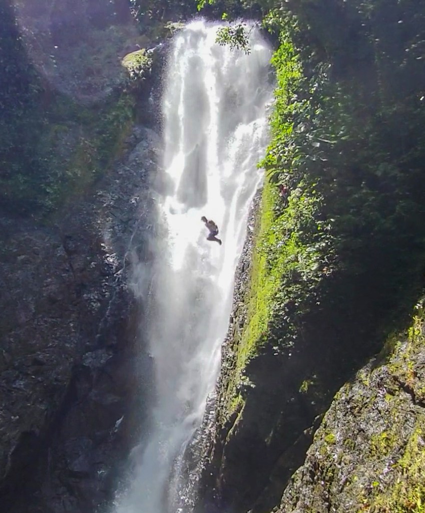 Arrivés à destination, il faut 15 minutes de marche sur un chemin escarpé et hyper glissant pour arriver au pied de la cascade. Nous avons quand même croisé 2 personnes qui étaient tombées, soignées par nos guides qui étaient tous équipés de trousse de secours pour desinfecter écorchures et petites plaies.
