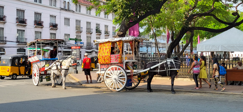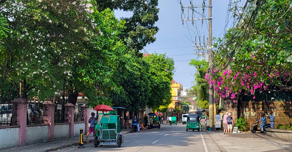 Quand nous quittons le fort, nous nous promenons dans le reste de la ville et nous retrouvons cette ambiance de petits commerces ambulants, les tuk-tuk, les bus locaux très colorés les petits marchés et leur cuisine de rue, le tout dans un environnement, où l’architecture coloniale espagnole prédomine.
