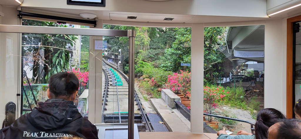Nous prenons un cable car pour monter à 400 m d’altitude au pic Victoria qui surplombe la ville.