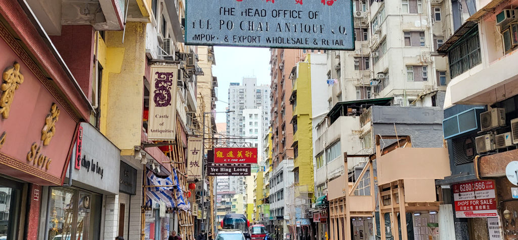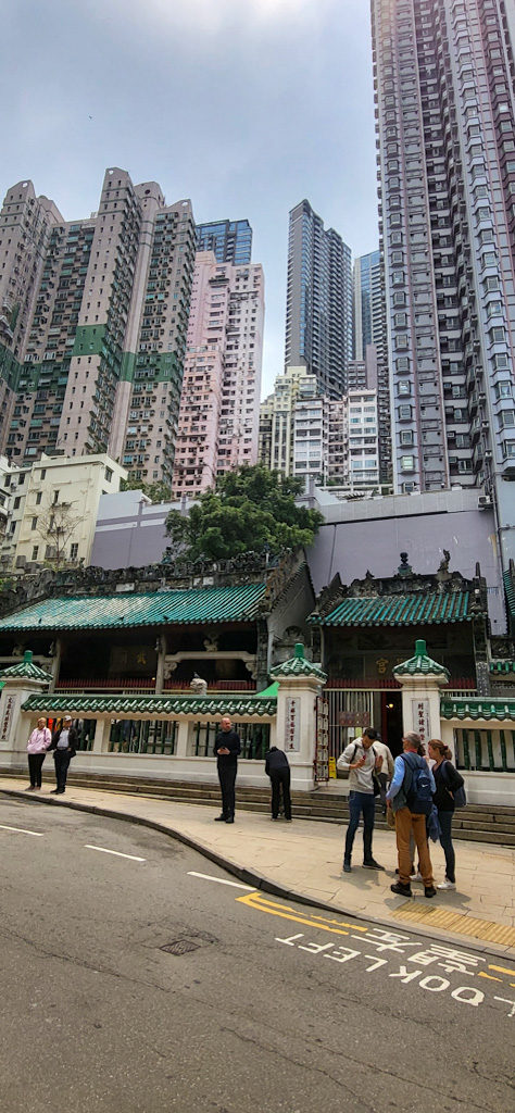 Nous repartons pour nous promener dans un petit marché où il y a surtout des chinoiseries (ce qui n’est pas étonnant à Hong Kong). Évelyne essaie de se débarrasser des derniers RMB que nous avions gardé d’un précédent voyage en Chine (elle y arrive très bien). Pendant ce temps, je tombe sur un point de vue sympa à proximité: un point de vue de Hong Kong sans aucune tour dans le champ de vision:
