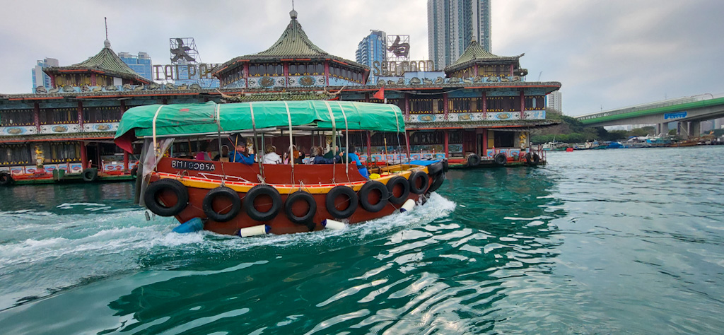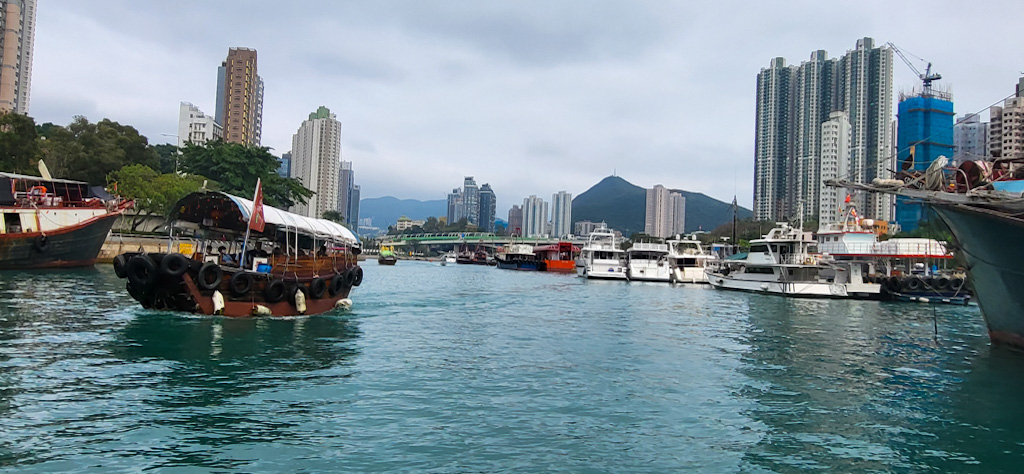 Après un déjeuner composé principalement de raviolis chinois, nous partons pour Aberdem, pour faire une promenade en sampan.
