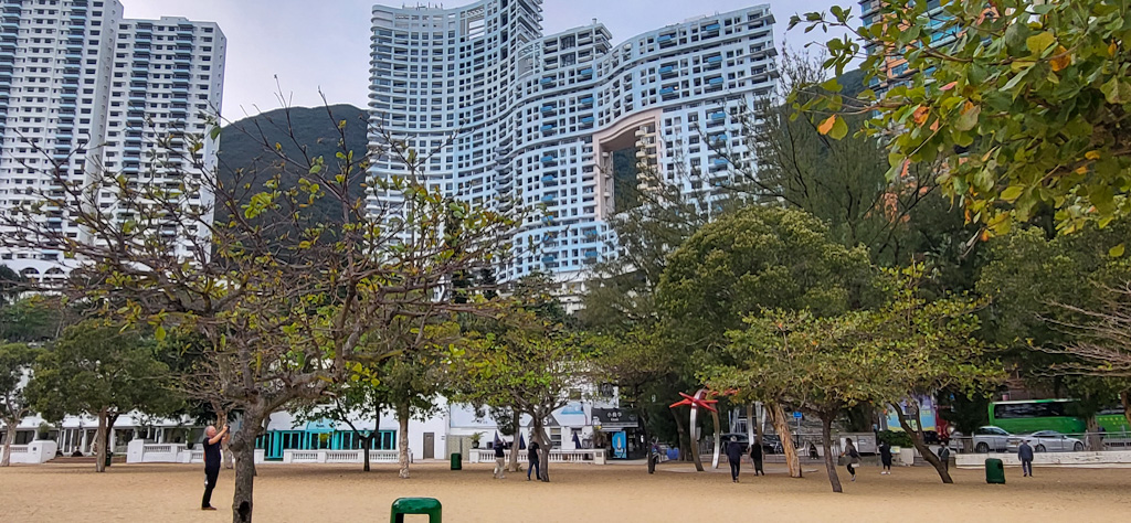 La densité de population est impressionnante, et pourtant tu as trouvé une plage presque déserte. Dommage que tu n’aies pas vu passer un dragon dans le trou de l’immeuble !