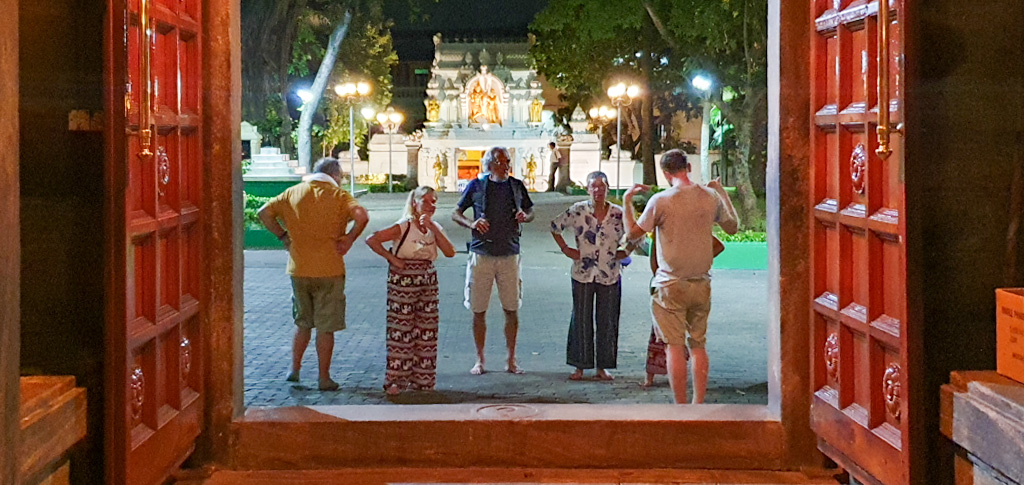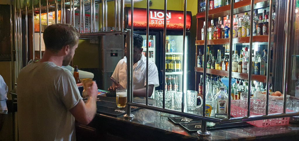 Olivier nous propose de déguster une bière sur le toit d’un café. La nuit tombe, nous profitons de la vue à partir des toits, pendant qu’Olivier nous parle de l’histoire et de la vie au Sri Lanka.