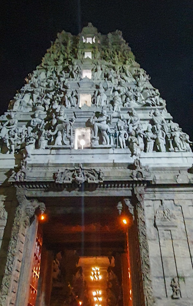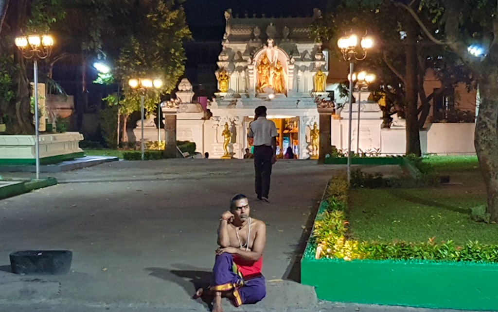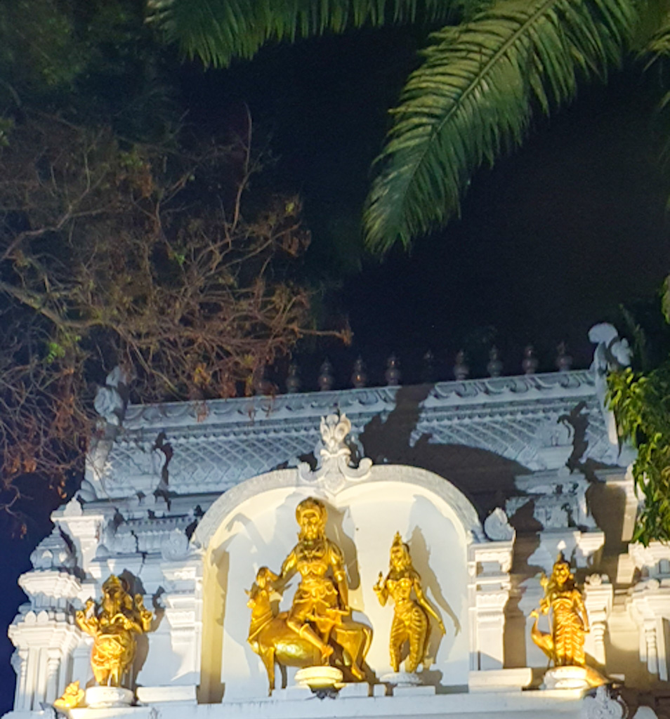 Enfin nous partons visiter un temps hindou assez unique: le Shri Ponnambalawaneswaram Kovil. C’est un des rares temples hindous où il n’y a pas de couleur sur les statues extérieures. C’est un temple en granit mais le plus étonnant est l’intérieur, où l’on se trouve plongé dans l’ambiance des films d’Indiana Jones.