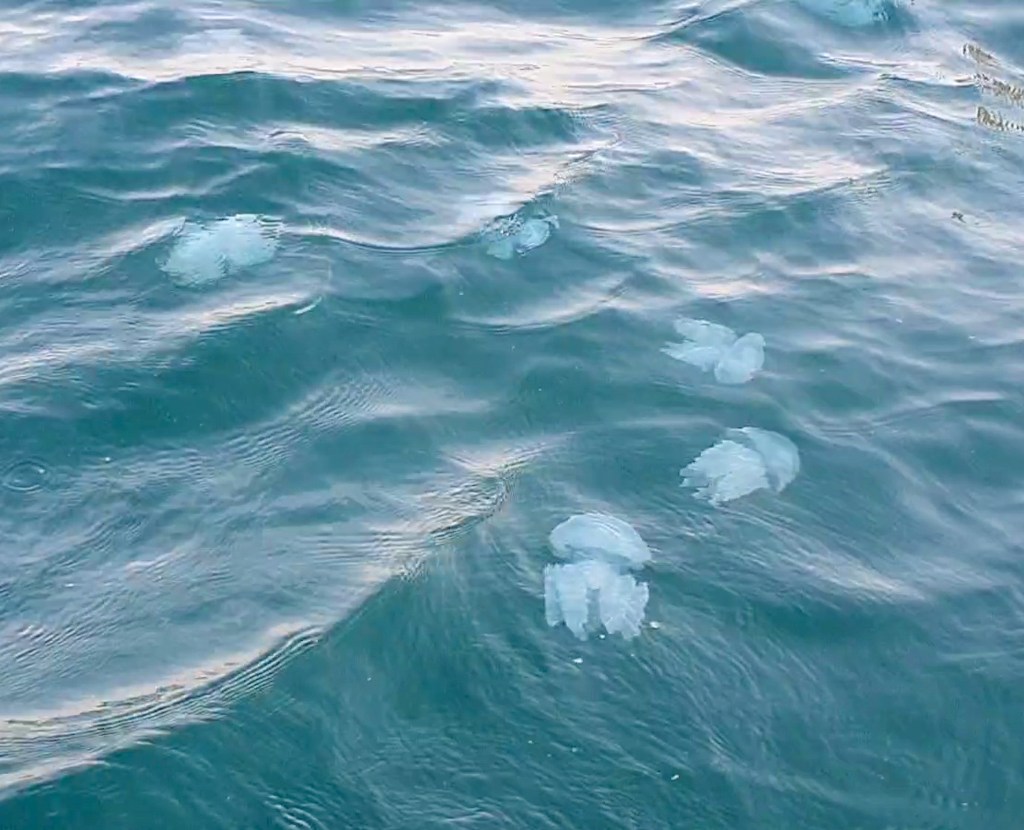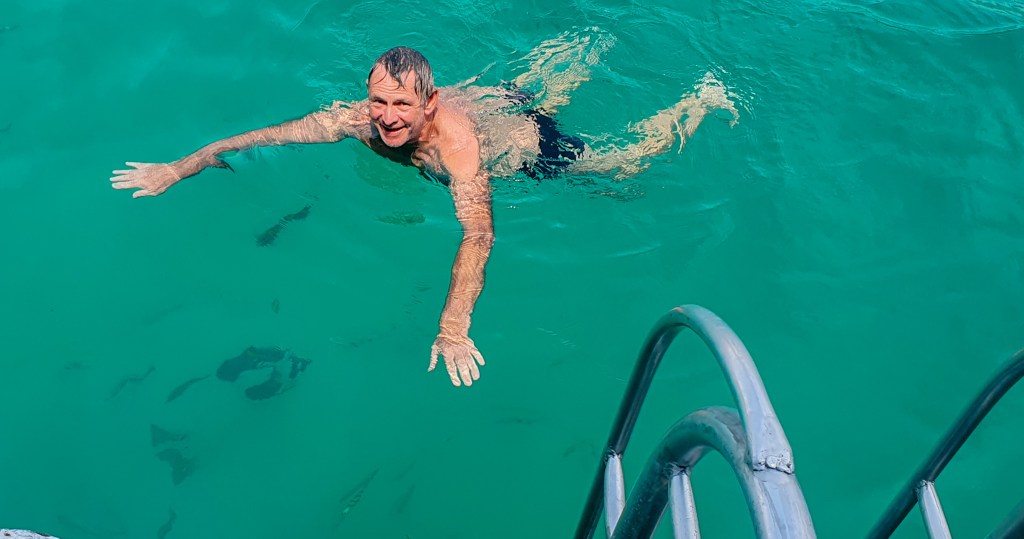 Il y a de très nombreuses méduses mais heureusement nous pourrons nous baigner en sécurité dans un coin dépourvu de ces bestioles.