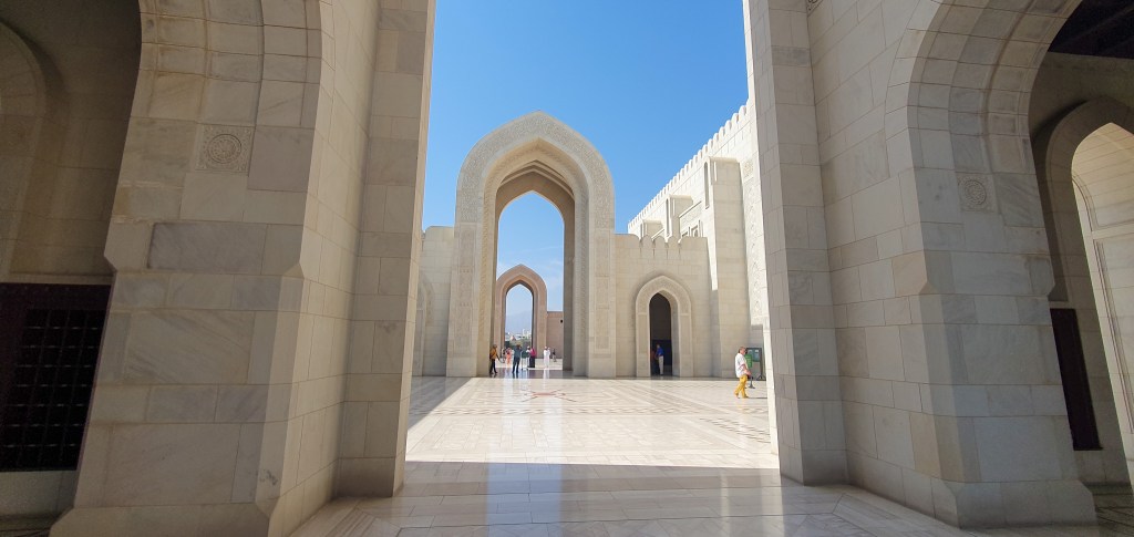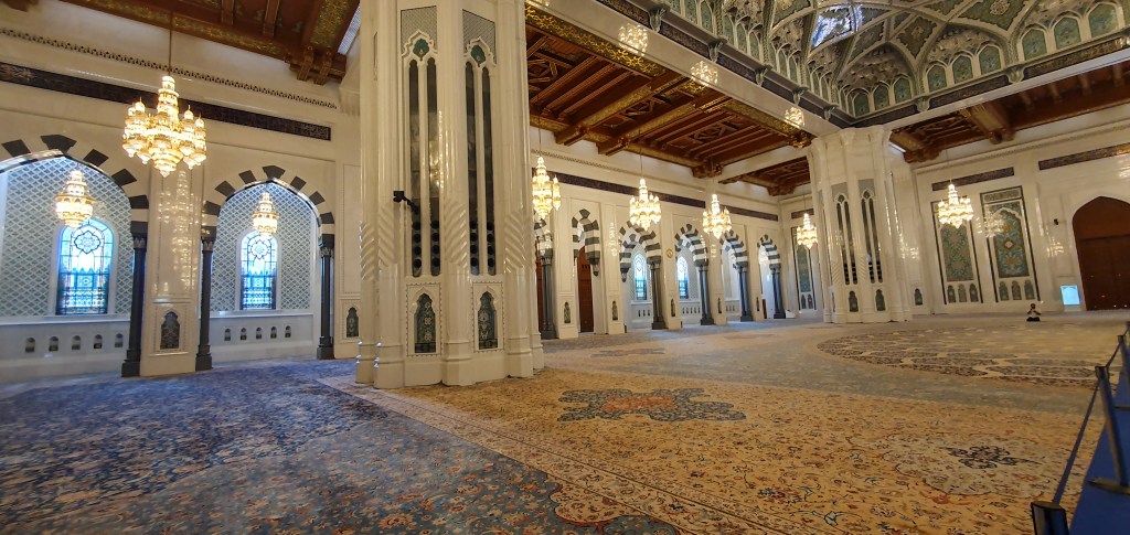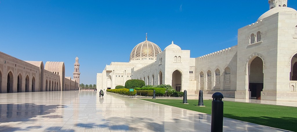 Notre première visite sera pour la grande mosquée du sultan Qabus. C’est un monument moderne construit dans le style islamique classique. C’est une rare mosquée autorisée à la visite pour les non musulmans.