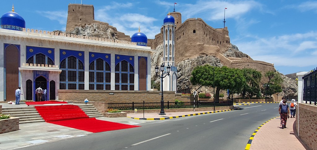 Quand on découvre Mascate, on entre dans une image tirée d’un conte des mille et une nuits:’une belle ville orientale avec ses bâtiments et maisons de taille modeste aux murs blancs et ses nombreuses mosquées aux coupole dorées ou colorées.