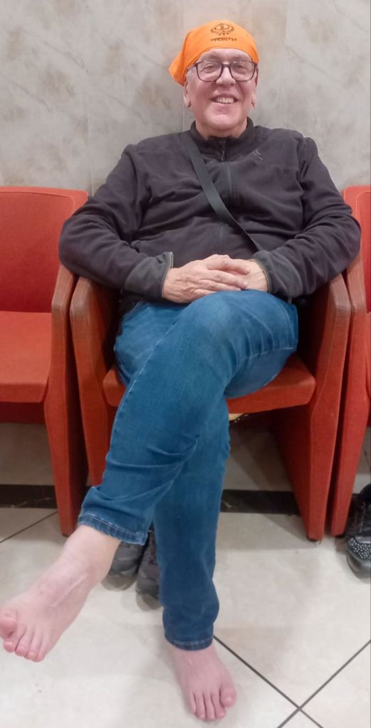 Nous visitons les immenses cuisines où s’affairent cuisiniers, et serveurs pour préparer sans arrêt soupe, galettes de pain et riz: le concept des restaurants du coeur à l’indienne.