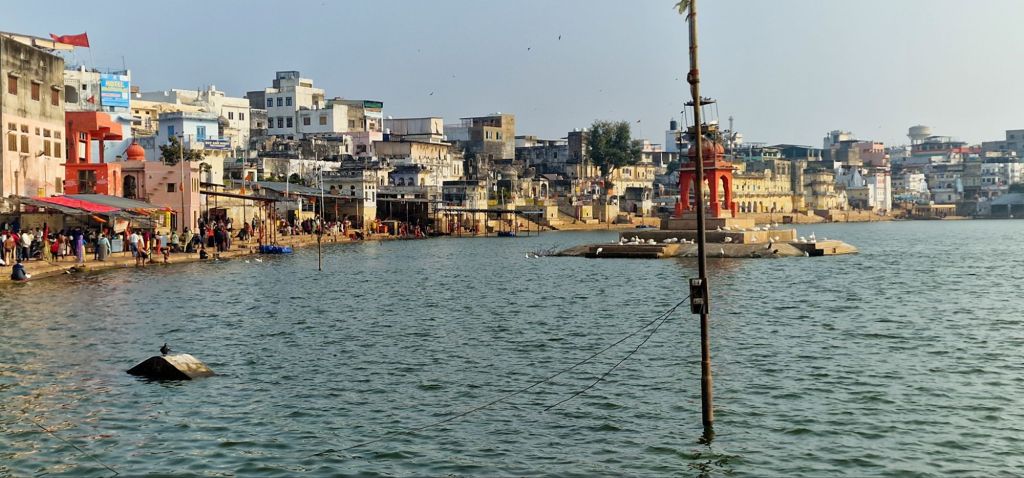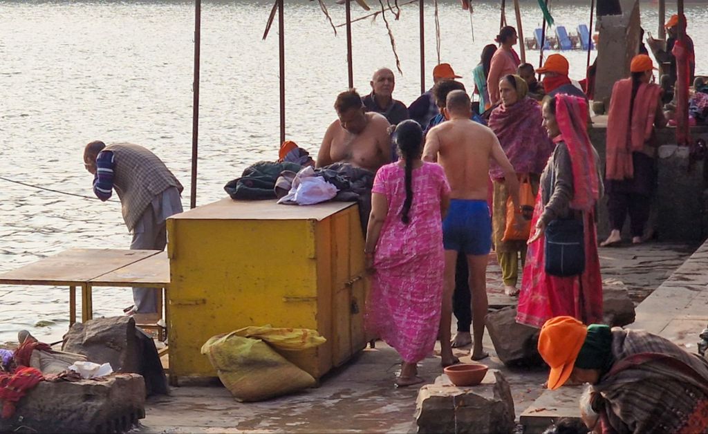 Quelques pèlerins se baignent dans le lac. On retrouve très partiellement l’atmosphère de Varanasi avec beaucoup moins de monde.