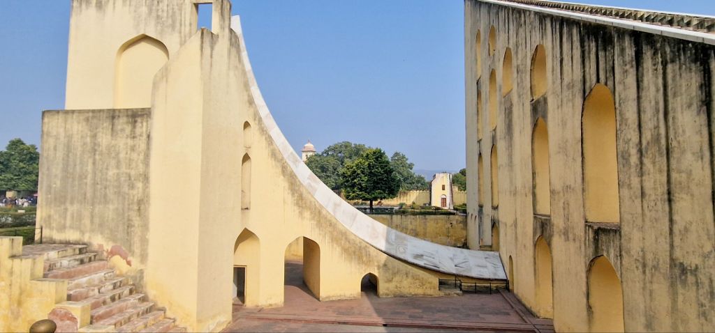 Nous repartons à Jaipur pour visiter l’étonnant observatoire astronomique du XVIII ème siècle situé au cœur de la ville. Il a été construit par un Maharaja féru d’astronomie et de mathématiques. Sur l’ensemble du site, une vingtaine d’appareils de mesure monumentaux, souvent en marbre ont été construits .